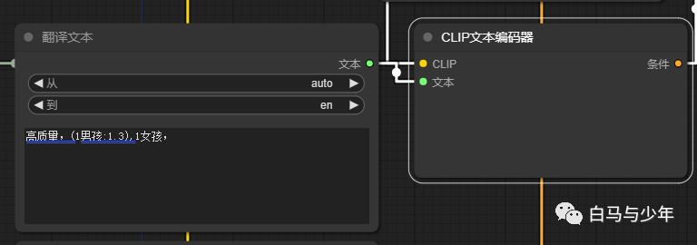 【翻译文本】节点呢,是可以用来替换【元节点】的,在sdxl的流程中,当我们需要将文本信息单独列出来的时候,就可以使用这个节点来代替。