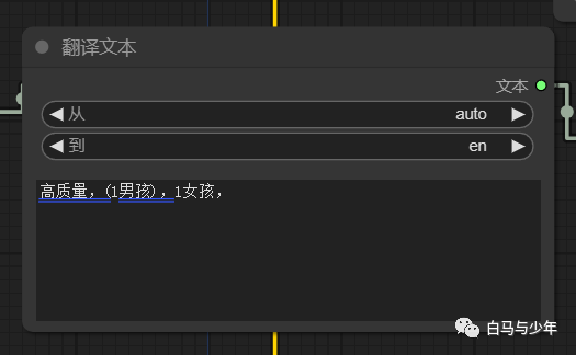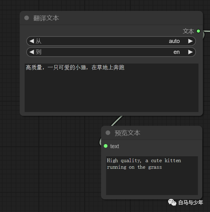 【预览文本】节点是可以连接到【翻译文本】上的,用来检查翻译的对不对。
