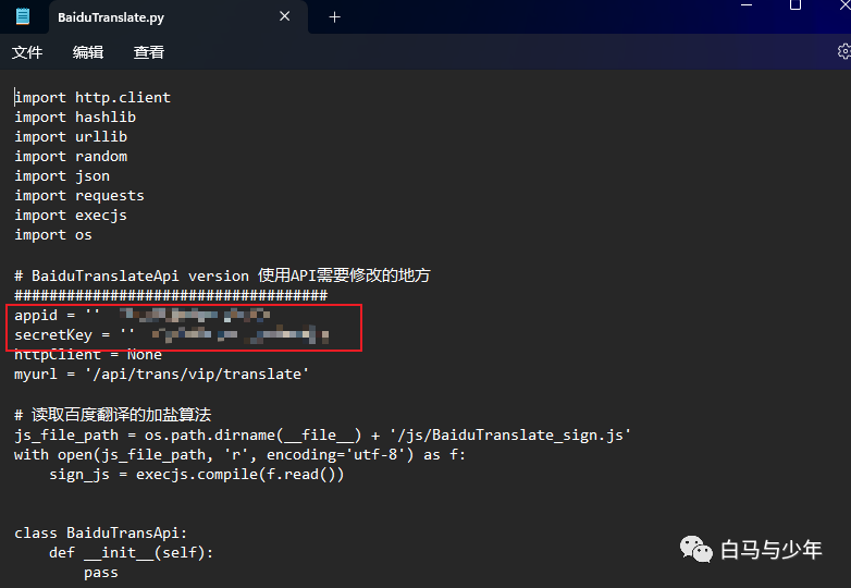 然后用记事本打开BaiduTranslate.py,