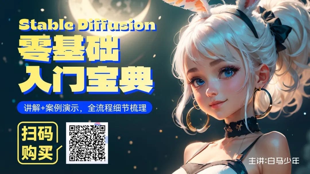 所以有的时候,我们从别的网址复制提示词过来却发现效果不一样,可能是因为comfyui读不懂我们提示词中的权重表达。 介绍完了,ComfyUI的插件很多,这6个是我建议大家在一开始学习的时候就装上的,可以很大程度的提高学习的体验。这些插件我会放到到网盘当中,大家想要的可以关注我的公众号【白马与少年】,发送【ComfyUI】即可获取链接。 我的最新课程《Stable Diffusion零基础入门宝典》已经上架CCtalk,正在持续更新中,前100名报名立减100,想了解的朋友长按下方图片识别二维码,可以进入购买链接>>>