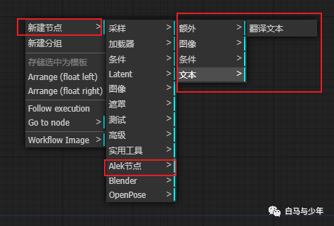 安装完成之后,在【新建节点】-【Alek节点】下面,我们就能看到这个插件下的所有的节点。