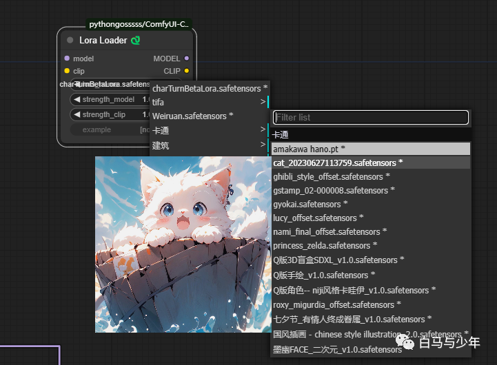 比如,有专门的大模型和lora节点,可以在选择的时候看到缩略图,并且增加了子文件夹的选项以方便我们进行分类。 比如,在lora或者大模型节点上单击右键,还能看到具体的信息,类似于c站助手的功能。