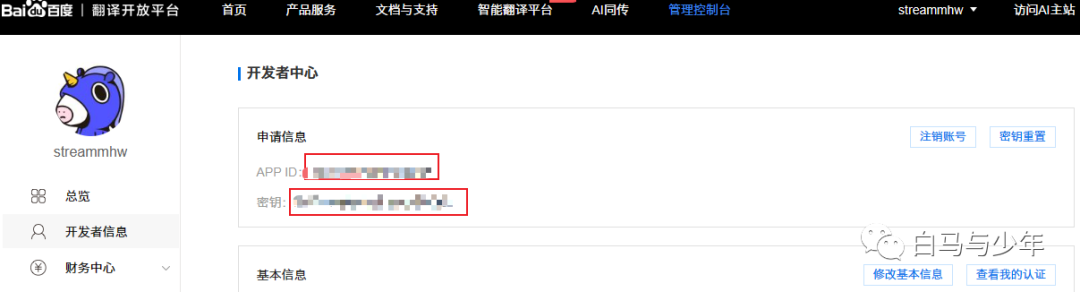 填入我们在百度翻译开发平台申请的ID和密码,这样我们就能正常的翻译了。