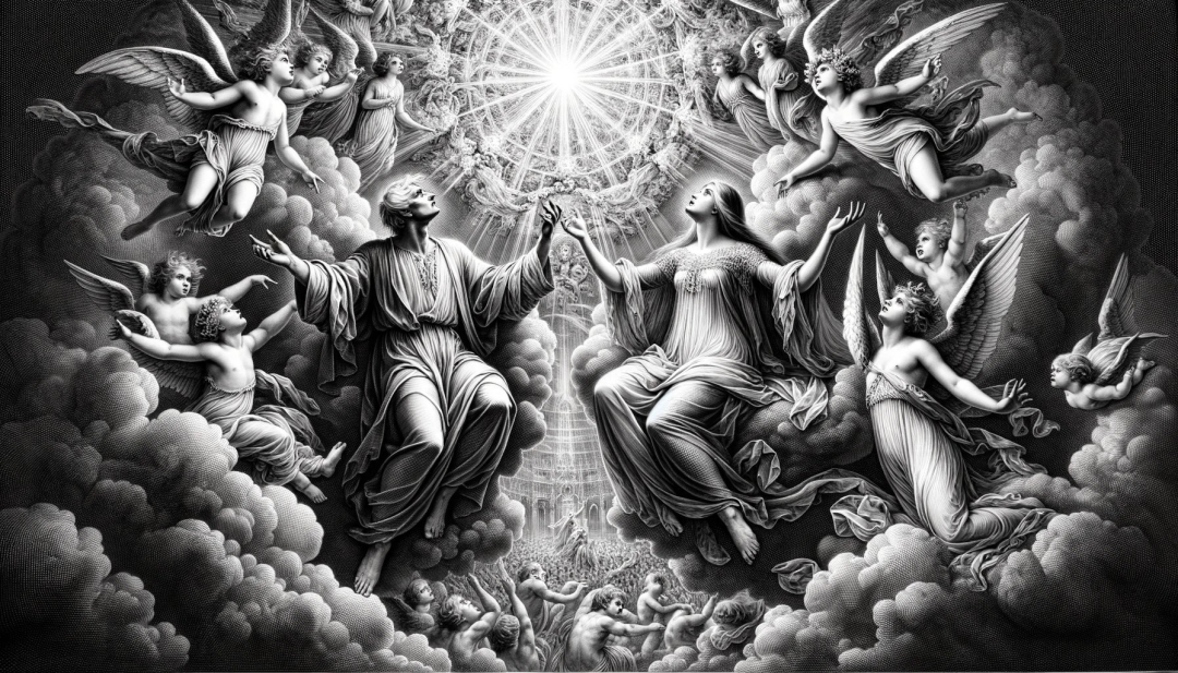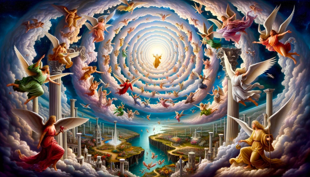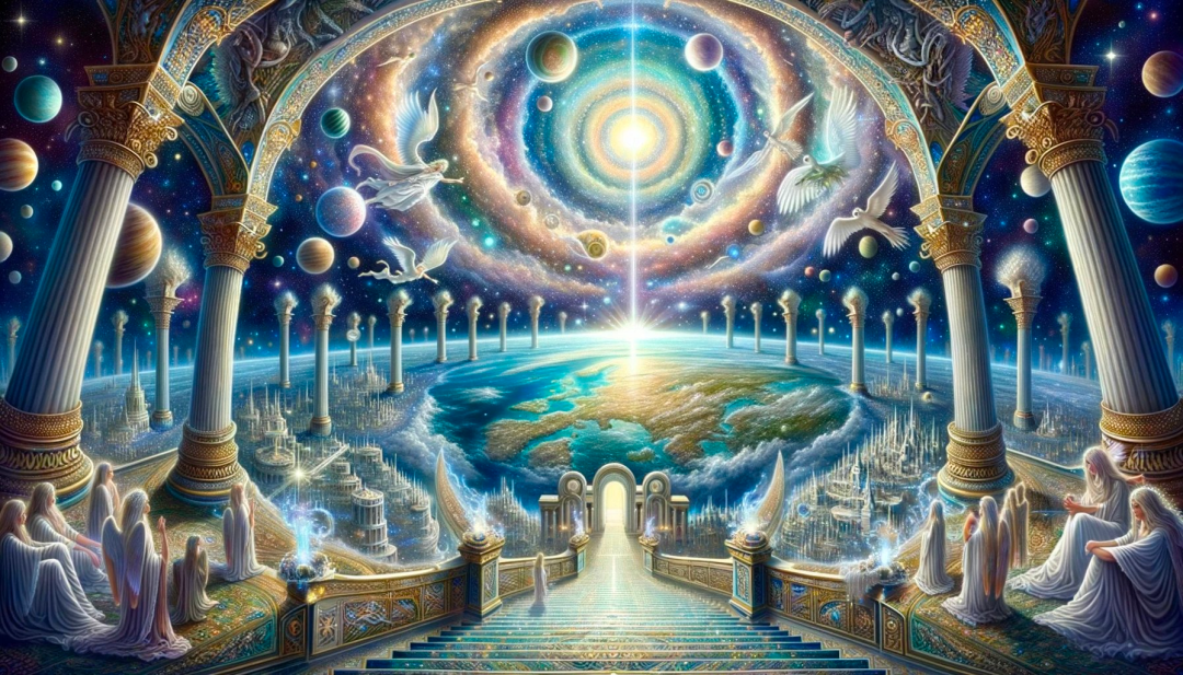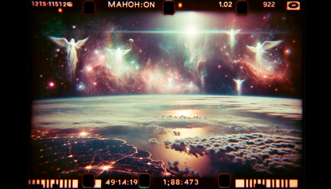 它在混合照片逼真和虚构元素方面表现出色。这里是平地球的冰墙以及天使升入天堂的照片。