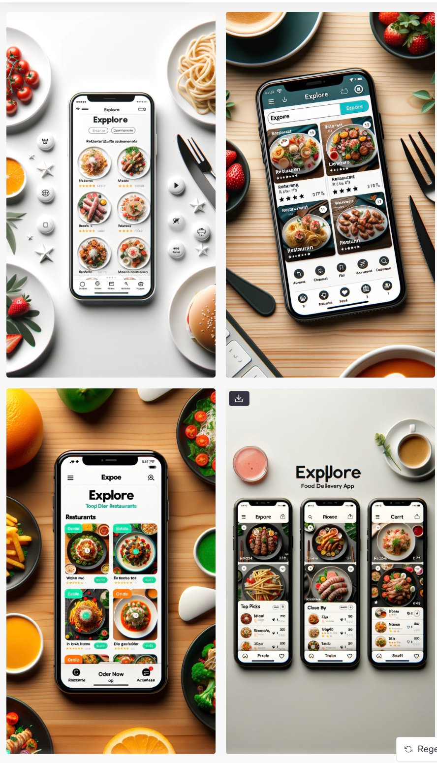 用它来画UI会怎么样。例如,’由苹果公司的产品设计师设计的食品配送应用程序的iOS UI的’探索’选项卡上的表现如何?”