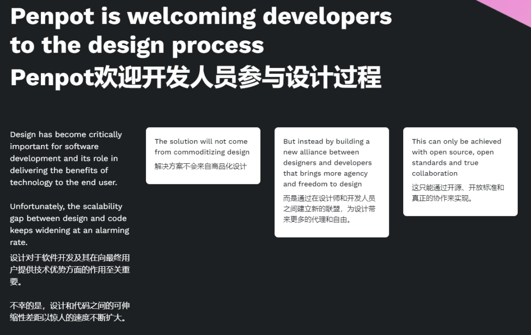 Penpot是第一个面向跨领域团队的开源设计和原型设计平台。Penpot不依赖于操作系统,是基于Web的,并使用开放标准(SVG)工作。Penpot邀请世界各地的设计师爱上开源,同时让开发人员对设计过程感到兴奋。