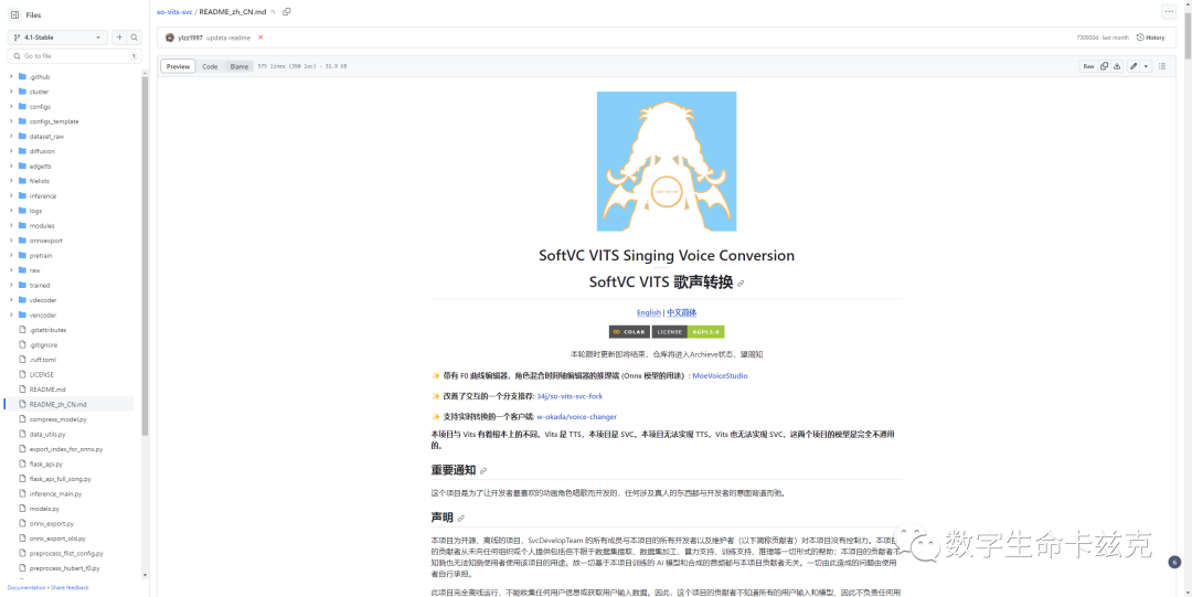 SVC,你就把它简单的理解成一个特定人物声音的变成器,你自己先录一段音频,然后把这个音频扔给AI,AI就自动产出另一个人声音的音频了。目前最主流效果最好的就是这个 So-Vits-SVC了。对着公众号私信”S”,就有羽毛大佬做的这个项目的本地整合包。我也写过两篇教程(分别是4.0和4.1版本)介绍过: