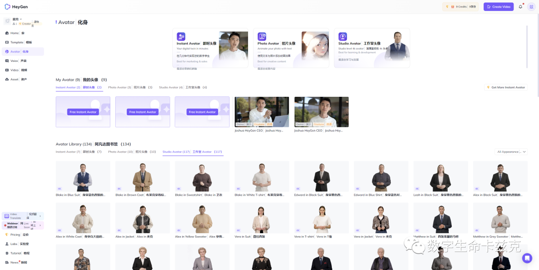 作为最近最炙手可热的AI热门应用,Heygen用霉霉讲中文、郭德纲讲音域之类的视频出尽了风头。提供了照片驱动(直接让照片动起来说话)、数字人训练(上传5分钟的视频)、一键翻译视频等等。目前最全能的AI数字人六边形战士,除了贵(1个月最低29美刀15分钟),什么都好。