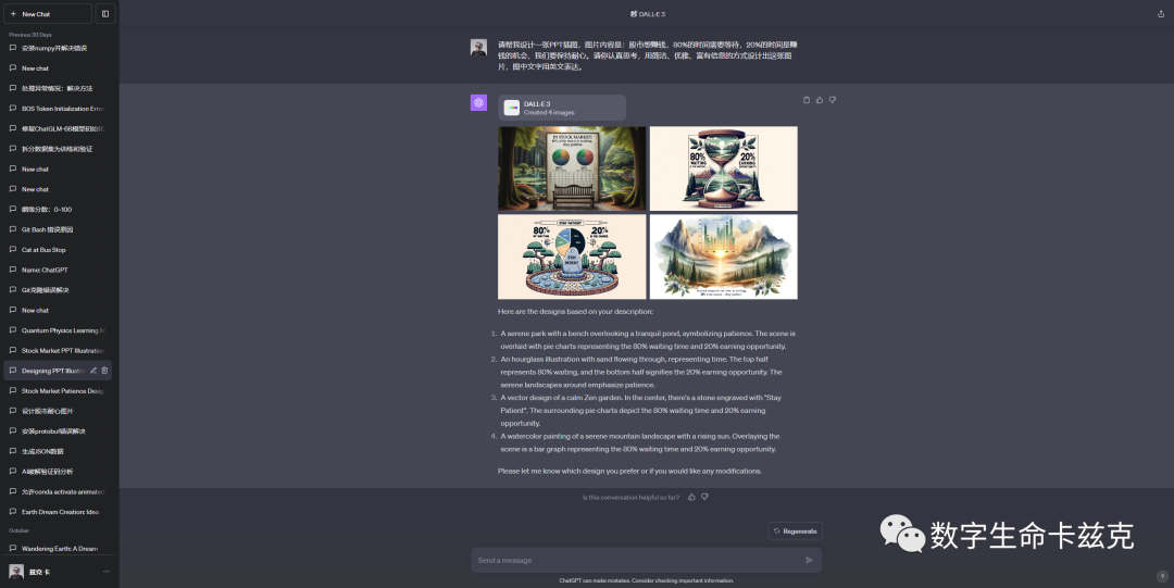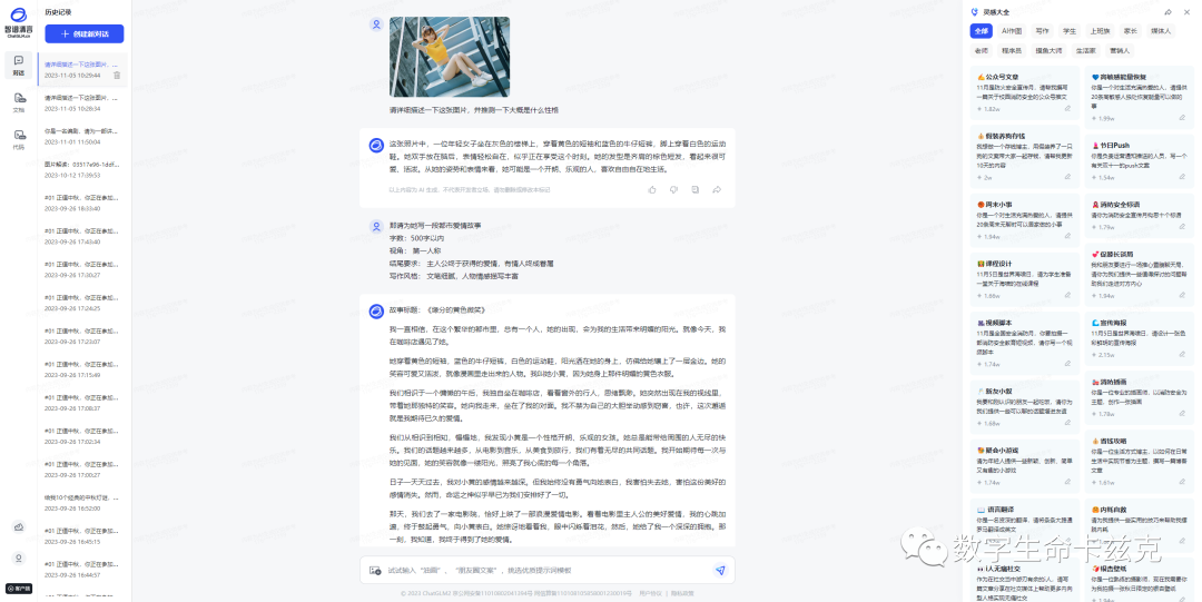 国产替代。很多人其实因为种种原因,比如单位、网络限制,魔法限制等等,只能用国产,那还是推荐智谱清言,我心中的国产大模型No.1,基本上就是ChatGPT的国产平替,多模态写代码画图什么都有,而且效果都不错,毕竟大名鼎鼎的ChatGLM在国际上还是有很强的影响力的。