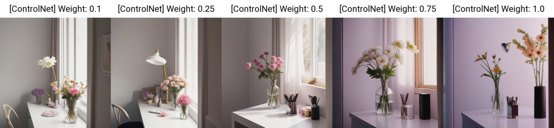 weight是这个controlnet在整体中起到多大的作用,下图可以看到weight从小到大的分布对画面的影响。