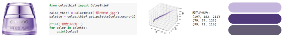 以上方法主要用在本地操作,一些步骤还需要人为参与。当要把这套逻辑工程化、线上化,自然没法再靠设计师吸取颜色了,中间过程会用一些简单的算法和代码,比如对sku主色的选取,可以用octree或colorthief。
