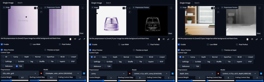 搭建好控制色彩的controlnet之后,补上针对商品和布局的controlnet,整个对色彩控制的流程就完成了。