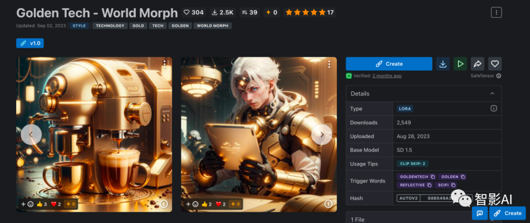 “realisticVisionV51”可以在“liblib”上下载,“Golden Tech – World Morph”需要上“Civitai”上下载。(在这里感谢两位模型作者的分享,谢谢!)